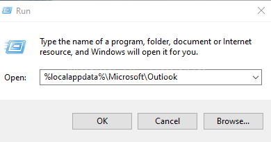 - In the Run dialog box, enter %appdatalocal%\Microsoft\Outlook and press Enter.