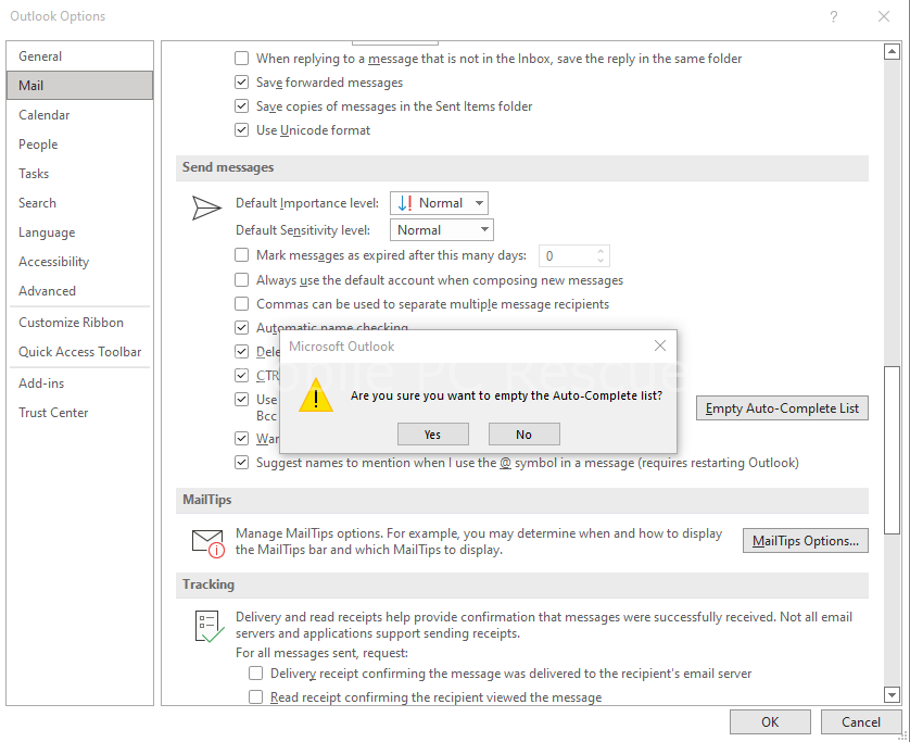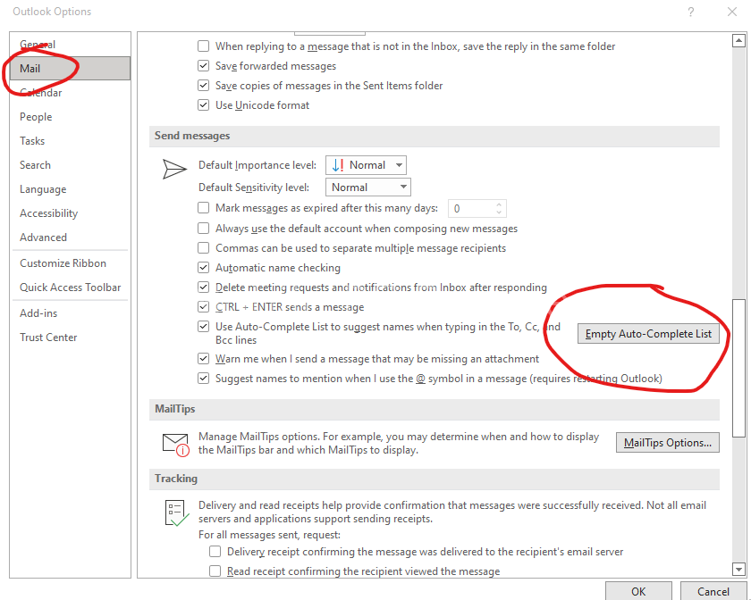 To turn off autocomplete, go to the Send messages section. Uncheck the box next to Use Auto-Complete List to suggest names when typing in the To, Cc, and Bcc lines.