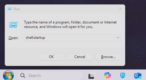 That will open this location in your browser: C:\Users\USERNAME\AppData\Roaming\Microsoft\Windows\Start Menu\Programs\Startup