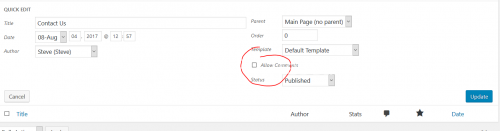 Now go to your pages and click EDIT, and you will see a new option that says COMMENTS – simply tick or untick this box to enable/diable comments 🙂