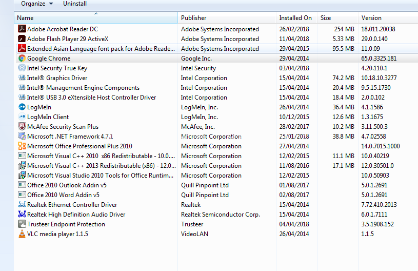 4 out 5 PCs running Office 2010 despite paying an annual fee for Office 365, the other PC running a 2013 version that has never updated to office 365 (2016) despite the nag screen at every power up for 2 years