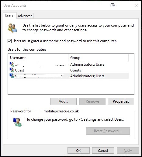 To do this is very simple, in your search box type NETPLWIZ and hit enter