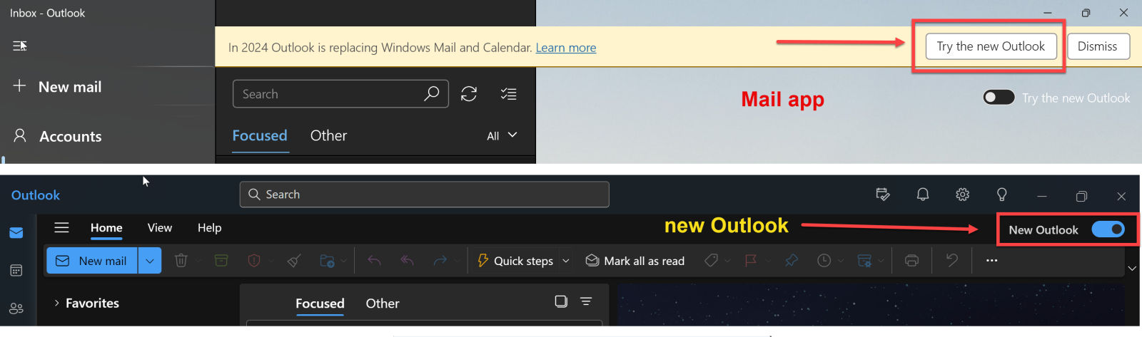 the “new Outlook” is going to completely replace the Windows 10 / 11 Maiil app. At the current time, as you have discovered, the “new Outlook” does not support POP accounts. With that said, if you are launching the “new Outlook” by clicking on the Mail icon in the Windows 10 / 11 Start menu, yu should see the “”new Outlook” toggle in the top right. Yu will not see that toggle if you explicitly launch “new Outlook” by clicking on the “Outlook new” icon